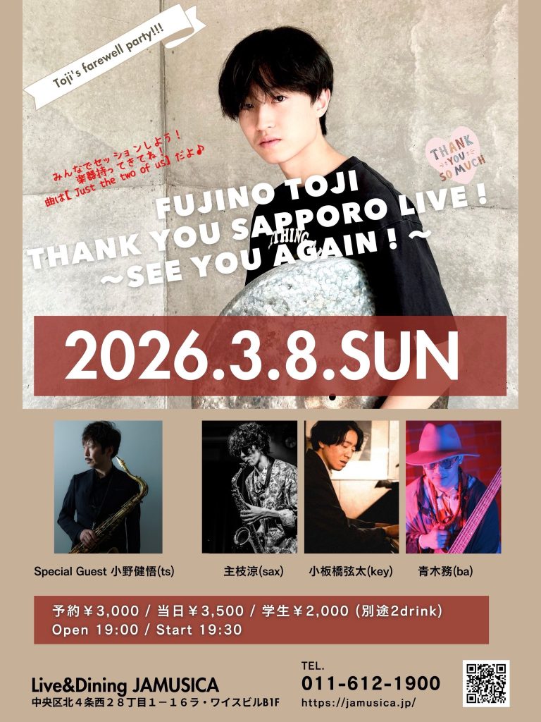 Open 19:00 Start 19:30 / 予約3000円/当日3500/学生2000円(別途2drink)